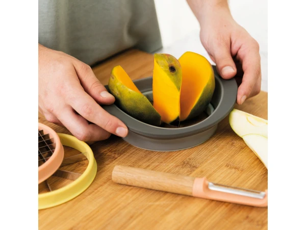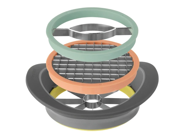 De Leo all-in-one snijder is een slim en mooi hulpmiddel om groenten en fruit te snijden. De messen zijn eenvoudig te wisselen met een simpele klik.