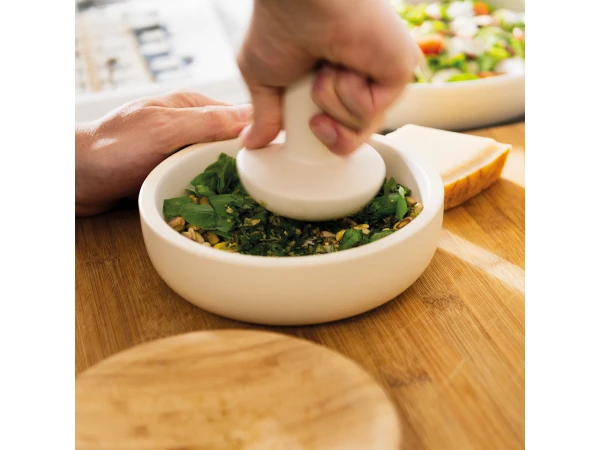 Of het nu voor home-made pesto, salsa of guacamole is: met deze vijzel vermaal je kruiden en specerijen in een handomdraai. Combineer met de vijzelset small voor een ideale set.