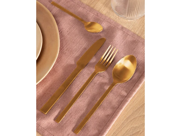 Bestek Lite is gemaakt van roestvrij staal met een mat goudkleurige afwerking. Bestek Lite is klaar om voor elke maaltijd te worden gebruikt, vanaf het voorgerecht tot het kopje koffie. Gebruik dit bestek bestaande uit 4 vorken, 4 lepels, 4 messen en 4 dessertlepels voor soep, salade of vis, wat je maar wilt. Om ze net zo mooi als de eerste dag te houden kan je ze zowel in de afwasmaschine als met de hand wassen. Come on, it’s food o’clock!