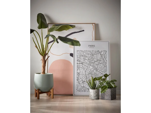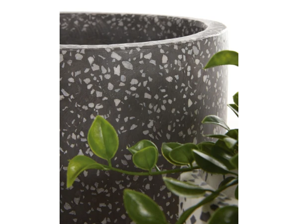 Terrazzo, terug van weggeweest, is de hoofdrolspeler in deze bloempotten. Deze set bestaat uit twee ronde bloempotten: een grotere met grijze bodem en een kleinere, met witte bodem. Ze zijn weerbestendig om op het terras te zetten, maar brengen ook veel sfeer in de woonkamer. It’s up to you!